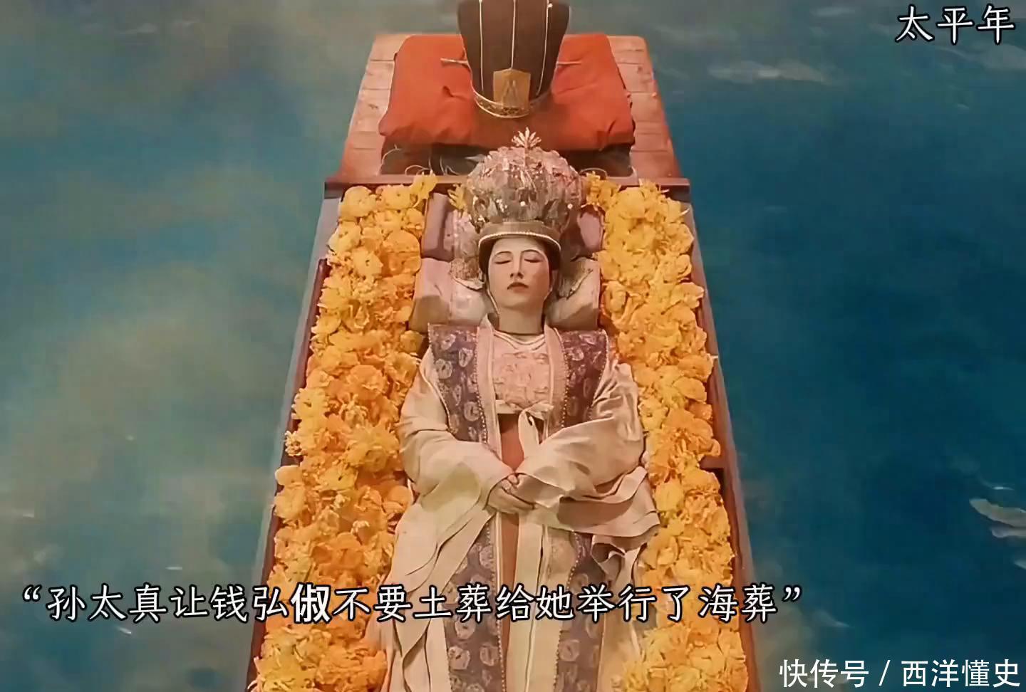 孙太真让钱弘俶不要土葬,给她举行了海葬。钱弘俶为了纪念孙太真建造雷峰塔(皇妃塔)。剧里是李元清编写了百家姓,孙氏排在了第四位。孙太真被赵匡胤封为吴越国王妃。孙太真得了肺痨,命不久矣。
