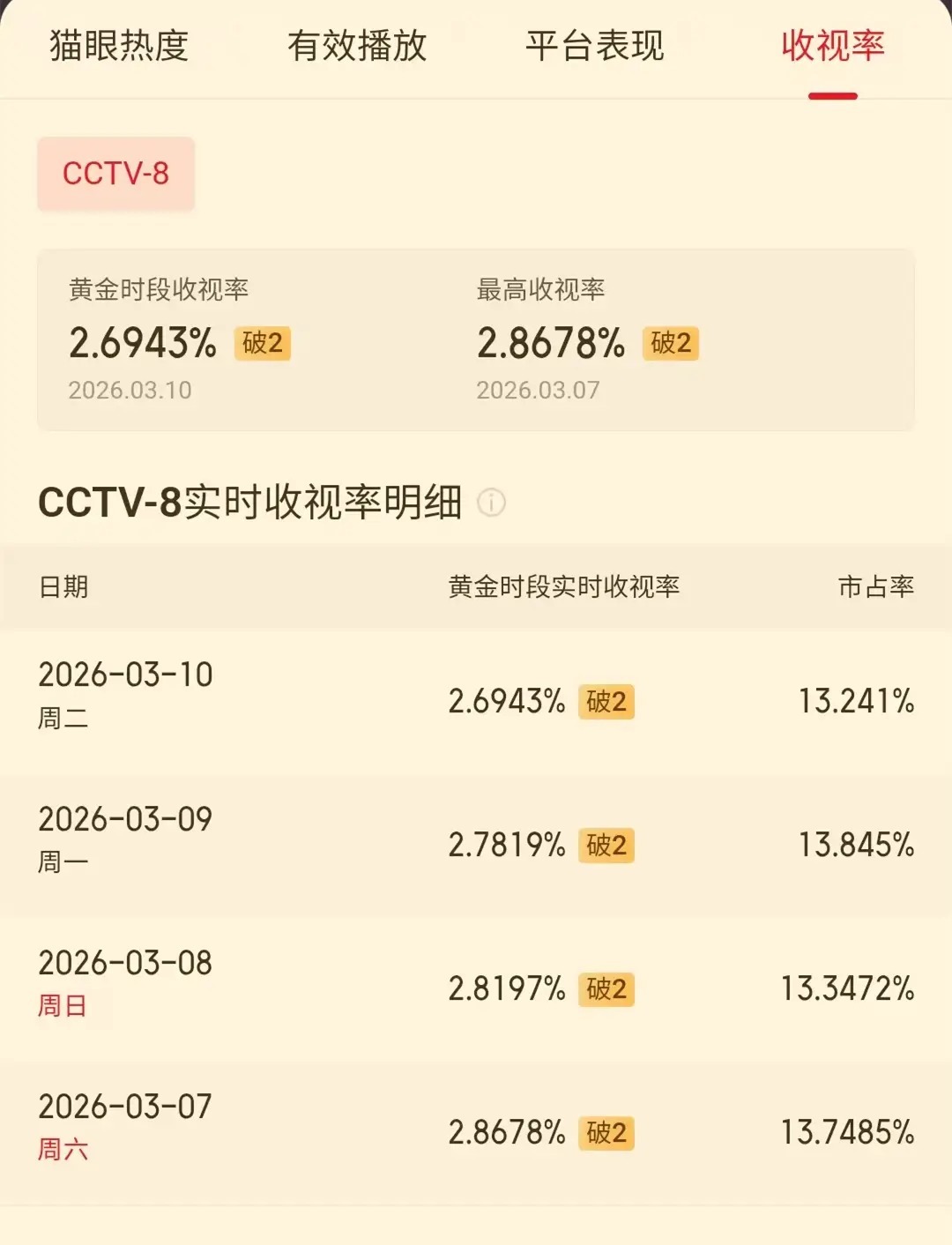3月11日,酷云和CSM均开出了电视剧《我的山与海》播出4天的收视率数据。在这两家数据平台上,这部电视剧都出现了收视率三连降的局面,可谓是喋喋不休了。CVB收视率数据方面,尚未开出《我的山与海》的第4日的收视率数据,但是,该剧在首播第二日,已经把收视率拉低到了2%前后,第二日、第三日和第四日正规的股票杠杆平台,其实都是在打“收视率保2的争夺战”了。