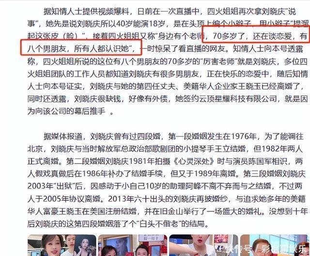 有主播随口提了一句“某70岁前辈情感丰富”,经过自媒体切片剪辑,刘晓庆就被贴上“交往8个男友”的荒唐标签。