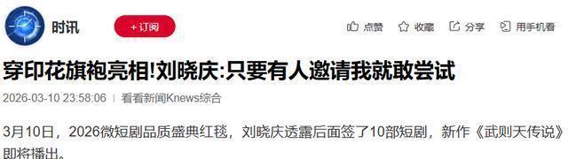看看新闻Knews综合2026-03-10穿印花旗袍亮相!刘晓庆:只要有人邀请我就敢尝试